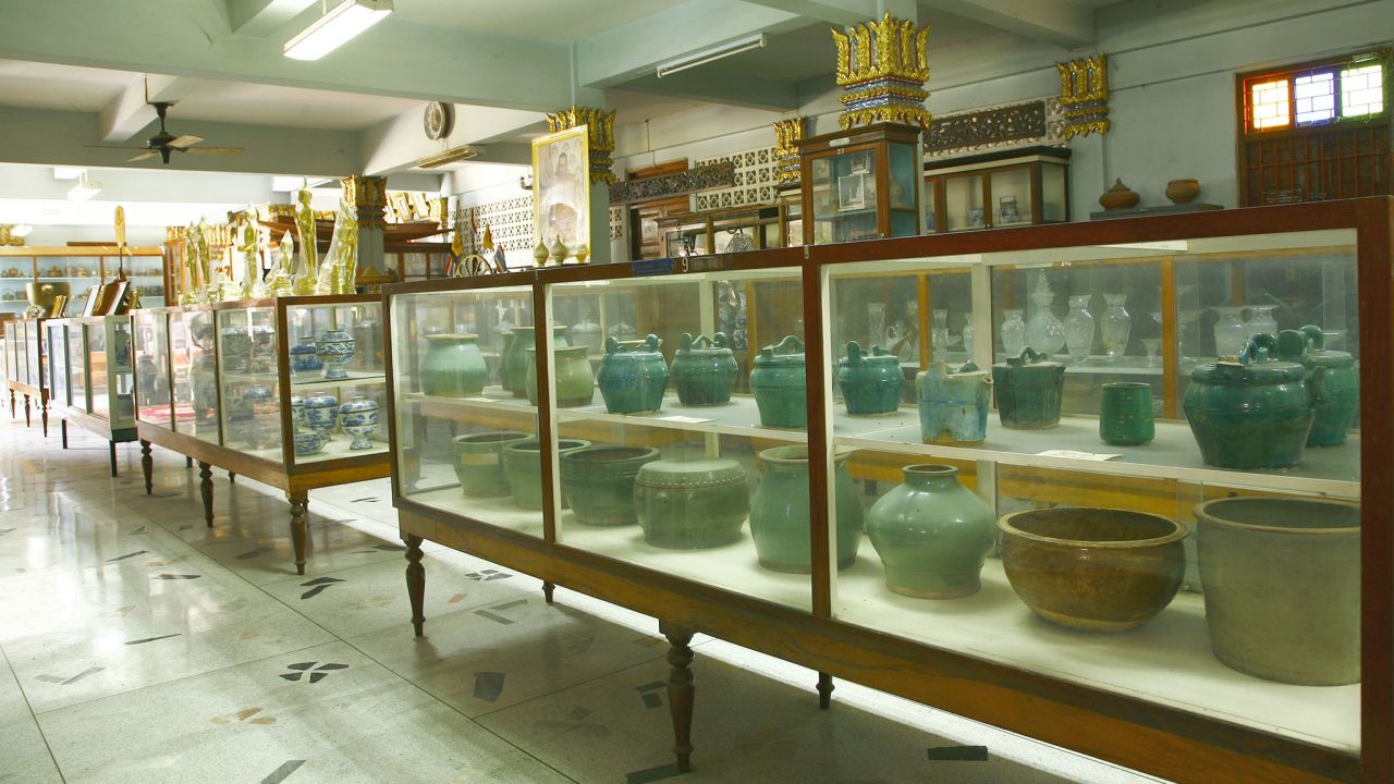 @ บาตรสังคโลก จัดแสดงอยู่ในตู้กระจกบนชั้น 2 ของพิพิธภัณฑ์ฯ เป็นบาตรสังคโลกสีงาช้าง มีลวดลายแตกลายงาที่เกิดจากกระบวนการเผาเครื่องสังคโลก