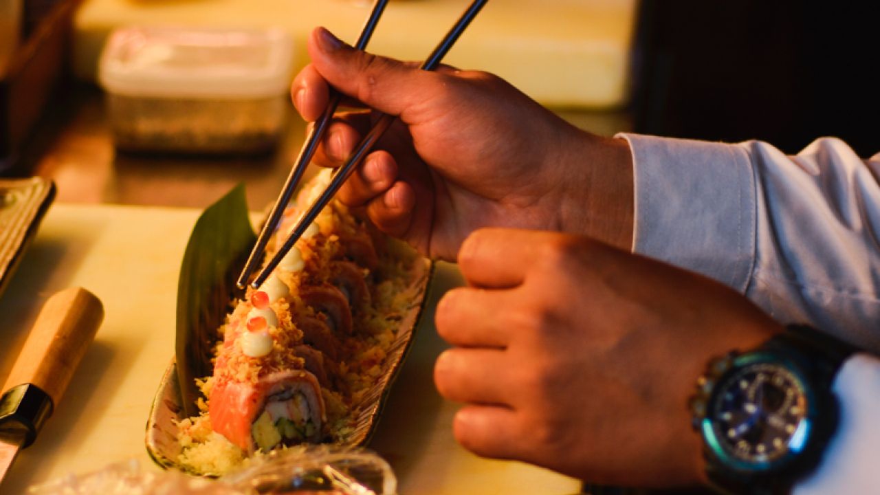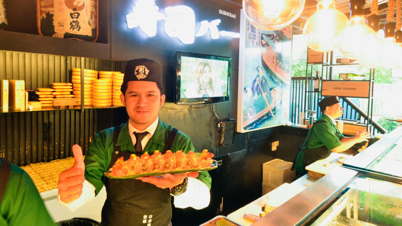 คอยปรุงอย่างพิถีพิถันทุกจาน แค่นั่งดูเชฟทำอาหารก็เพลิดเพลินแล้ว ล่าสุดทางร้านจัดเทศกาล Fusion Roll Festival ใครชอบแซลมอนขอแนะนำ Salmon Aburi Roll