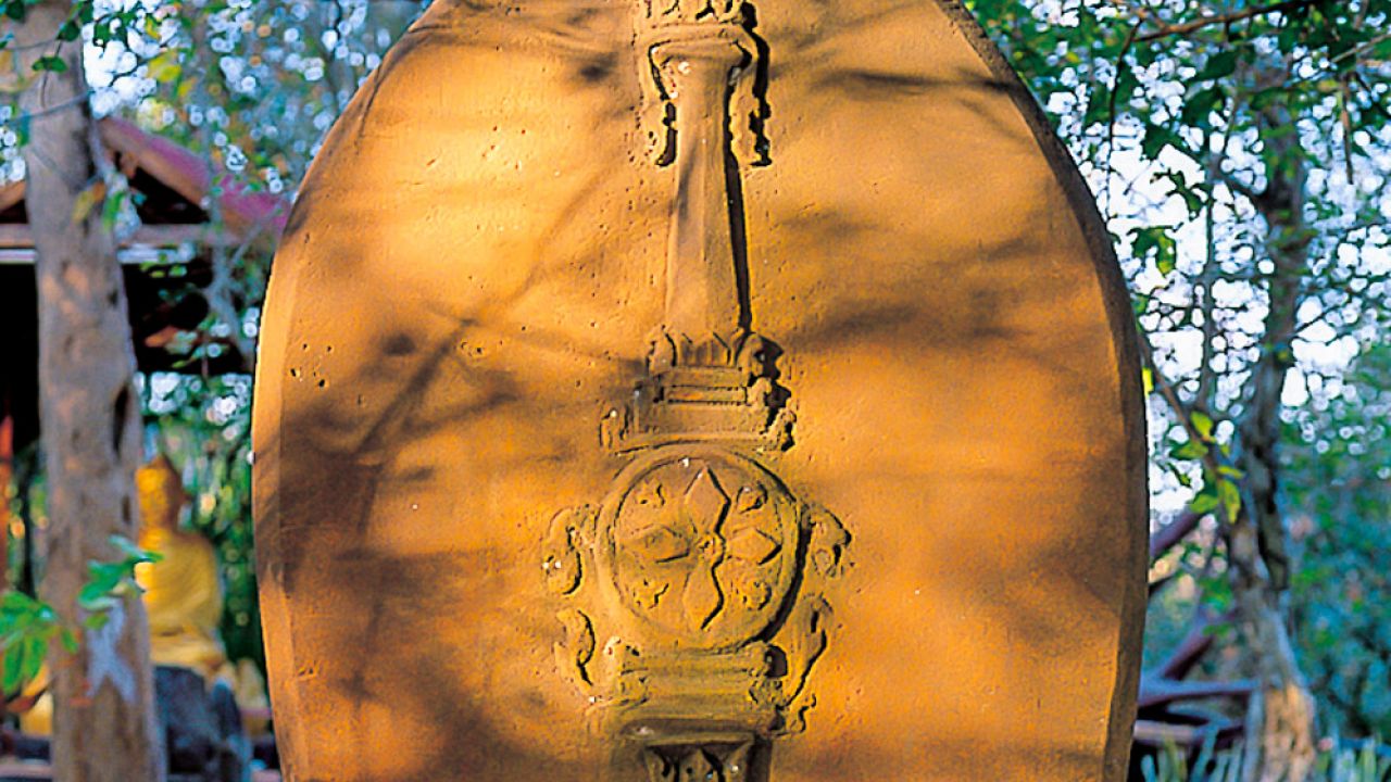 มีใบเสมาหินทรายขนาดใหญ่อายุกว่า 1,000ปีจำนวนมาก ลักษณะคล้ายใบหอก สลักลวดลายศิลปะขอมสมัยทวารวดี