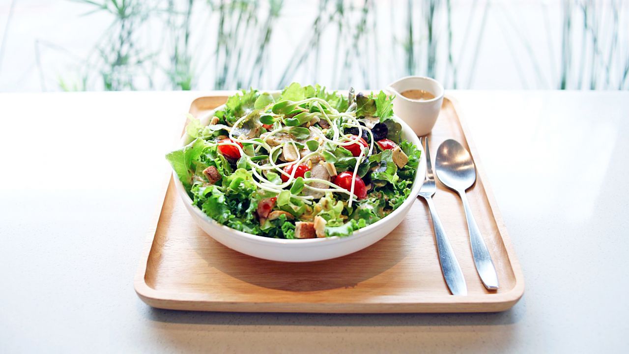 พื้นที่ร้านดูค่อนข้างแน่น แต่เข้ามาแล้วไม่อึดอัด เพราะใช้กระจกเป็นผนังและแบ่งพื้นที่ นอกจากที่นั่งแบบบาร์ข้างกระจกแล้ว เขายังมีโซนจำหน่ายผลิตภัณฑ์เพื่อสุขภาพ เช่น สบู่ ลิปสติก ฯลฯ รวมทั้งส่วนจำหน่ายของสด ของแห้ง และอาหารปรุงสำเร็จ เช่น ผักสด กุ้ง ข้าว หมูหยองไร้แป้งไร้น้ำมัน ฯลฯ ให้เลือกซื้อติดไม้ติดมือไปด้วย