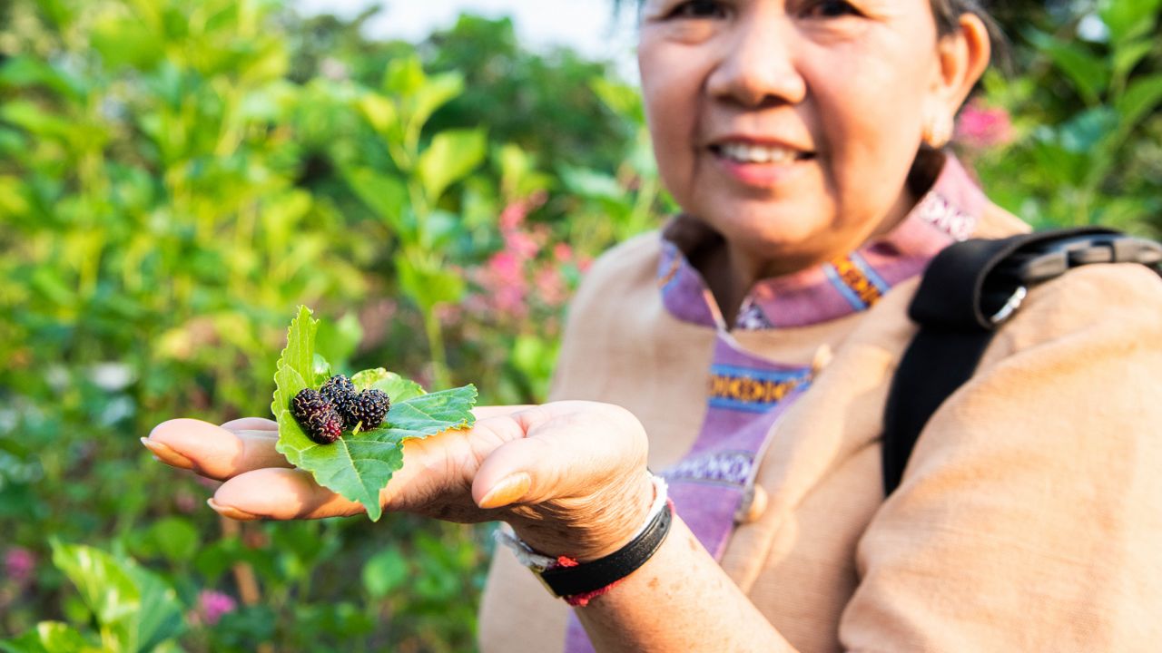 บนชั้น 2 ของร้านยังนำมัลเบอร์รีนี้มาทดลองปลูกด้วย ใครอยากถ่ายภาพหรือเก็บมัลเบอร์รีสดๆ กินก็ขึ้นไปได้