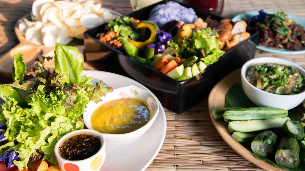 มาแล้วต้องสั่งชุดเบนโตะรวมอาหารเหนือ ซึ่งประกอบด้วยน้ำพริกหนุ่ม น้ำพริกอ่อง ไส้อั่ว หมูยอ ข้าวเหนียว และแคบหมู ส่วนผักกินแนมสามารถไปเลือกตักฟรี กินได้อร่อยปลอดภัย สำหรับเครื่องดื่ม ขอแนะนำมัลเบอร์รีปั่น ใช้ลูกมัลเบอร์รีออร์แกนิกสดมากๆ จากฟาร์มดาราดาเล ดื่มแล้วสดชื่นจริงๆ