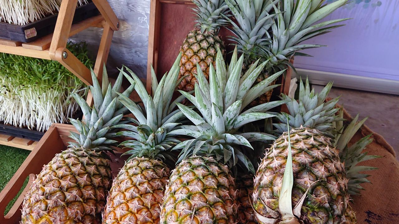 สับปะรดอินทรีย์ กิโลละ 35 บาท ปลูกโดยไม่ใช้สารเคมีและยาฆ่าหญ้า ไม่หยอดแก๊สเร่งการออกหัว ไม่ใช้ปุ๋ยหวาน จึงได้รสชาติตามฤดูกาล รับรองมาตรฐาน PGS เกษตรอินทรีย์โดยสามพรานโมเดล