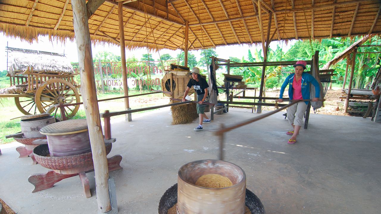 หากสนใจชมแปลงเกษตร ให้เดินจากลานต้อนรับมาอีกเล็กน้อยก็จะถึงลานตากข้าวเปลือก ยุ้งข้าว เล้าเป็ด และแปลงผักสลัดในโรงเรือนกางมุ้ง ทั้งมีการจัดแสดงเครื่องไม้เครื่องมือของชาวนาไทยในอดีต เช่น เครื่องสีข้าว ครกตำข้าว ซึ่งล้วนแต่ใช้พละกำลังของเราแทนเครื่องจักรกล